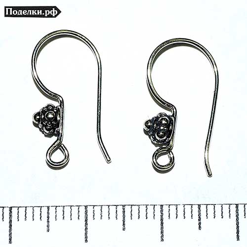 Швензы-крючки Бали с цветком 0000643 серебряный 19x10x4 мм