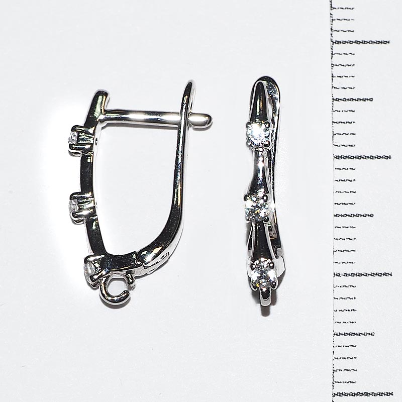Швензы с французским замком Бали с тремя стразами 0000697 серебряный 20x12x3 мм