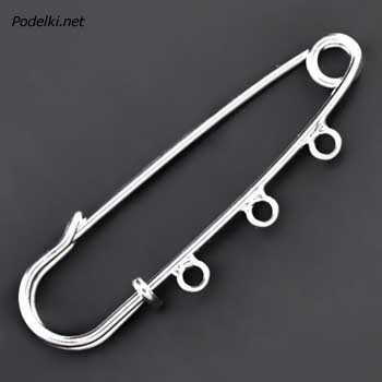 Английская булавка с тремя петельками 0000809 серебряный цвет 70x20 мм