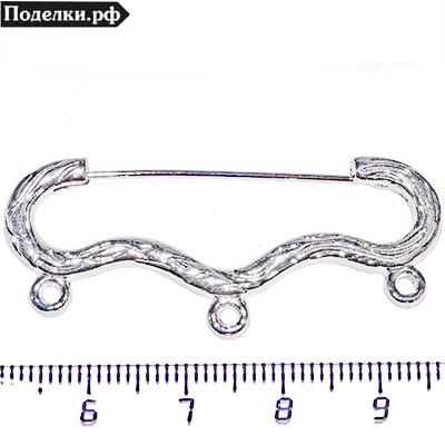 Булавка с тремя петельками 0000815 серебряный цвет 46x19 мм