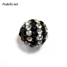 Акриловая бусина Шамбала 0001155 черные и серебряные стразы 10 мм