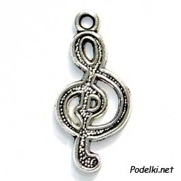 Подвеска Скрипичный ключ 0001333 серебряный цвет 28x13 мм