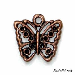Подвеска Бабочка резная 0001350 медный цвет 17x17 мм