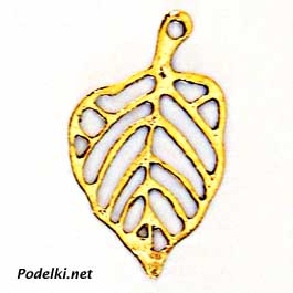 подвеска листик широкий прозрачный 0001392 золотой цвет 25x15 мм