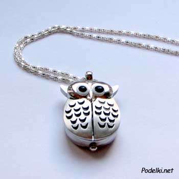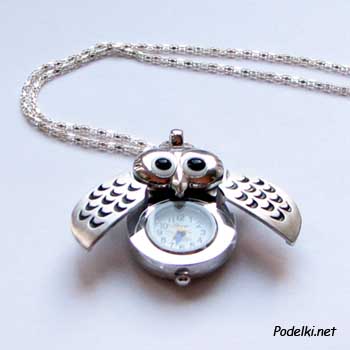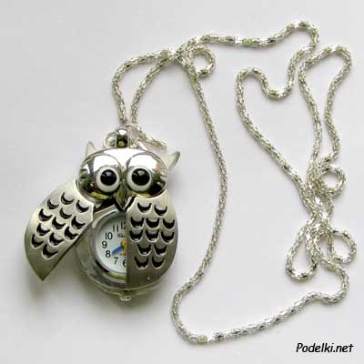 Часы с цепочкой Сова 0001506 серебряный цвет 25x35 мм