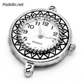 Основа для часов 0001518 серебряный цвет с узорами с белым циферблатом 26 мм