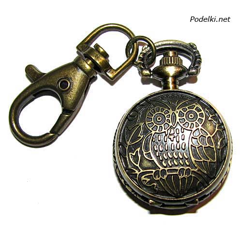 Часы с карабином Сова на ветке 0001530 бронзовый цвет 42x28x10 мм