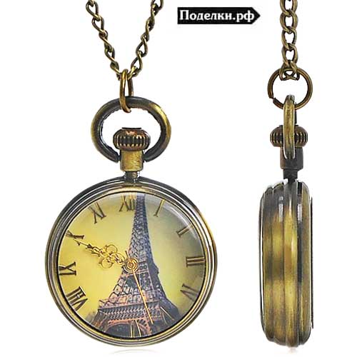 Часы с цепочкой Эйфелева Башня 0001536 бронзовый цвет 50x35 мм
