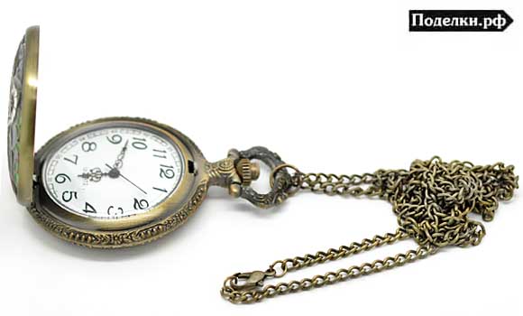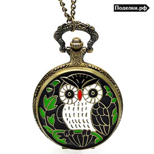 часы с цепочкой круглые сова с эмалью 0001537 бронзовый цвет 68x47 мм