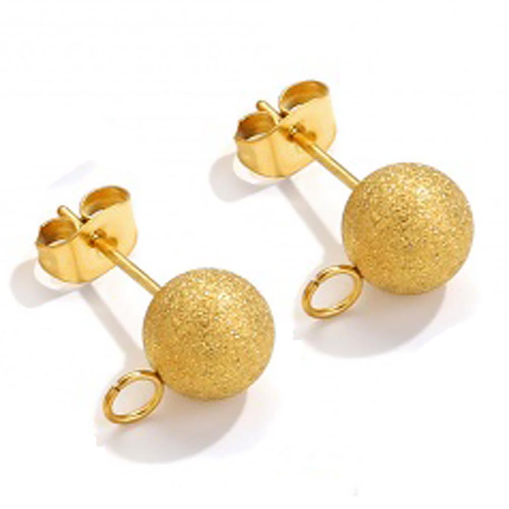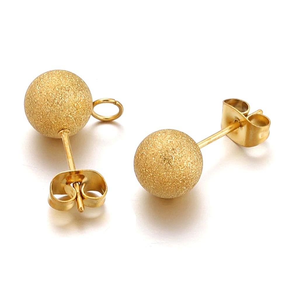 Пуссеты нержавеющая сталь Шарик сахарный 8 мм с петлей 0001624 золотой цвет 18х10 мм