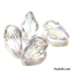 Стеклянная бусина Капля граненая 0001978 прозрачная перламутровая 15x10 мм