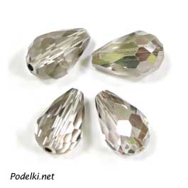 Стеклянная бусина Капля граненая 0001990 серебристая 15x10 мм