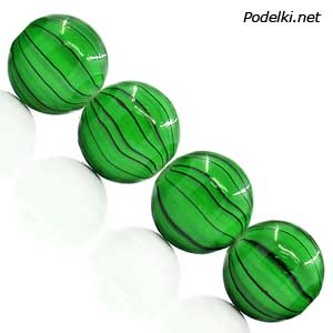Стеклянная бусина Арбуз зеленый 0001992 шарик 12 мм