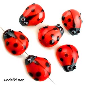 Стеклянная бусина Божья коровка 0001993 красная с черным 16x11x7 мм