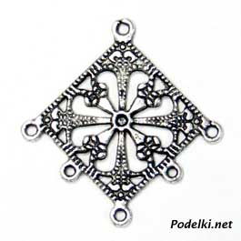 коннектор ромб 0002433 цвет античное серебро 35x33 мм