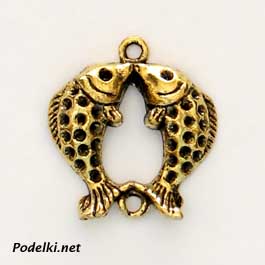Коннектор Рыбы 0002436 цвет античное золото 22x20 мм