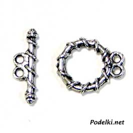 Тогл Витой 0002608 цвет античное серебро 2 нити 18x15 мм (застежка 20x7 мм)