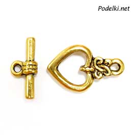 Тогл Сердце изящное 0002611 золотой цвет 21x13 мм (застежка 17x7 мм)