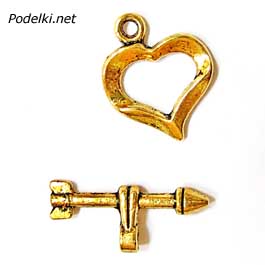 Тогл Сердце со стрелой 0002614 золотой цвет 16x13 мм (застежка 19x8 мм)