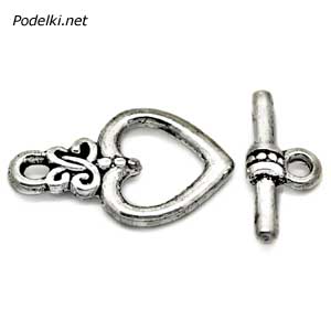 Тогл Сердце изящное 0002618 серебряный цвет 21x13 мм (застежка 17x7 мм)