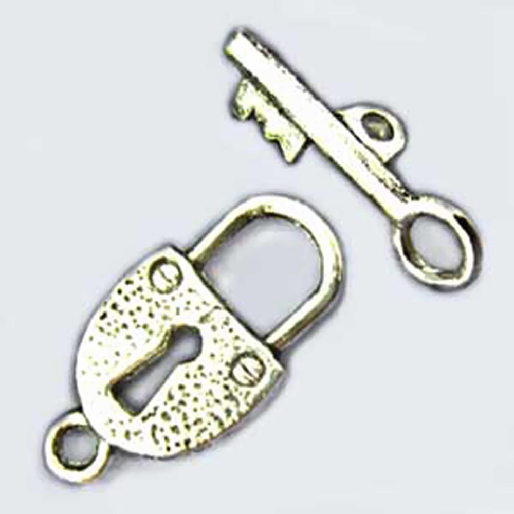Тогл Замок с ключом 0002633 серебряный цвет 21x11 мм (застежка 20x7 мм)