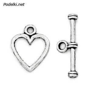 Тогл Сердце мини 0002638 серебряный цвет 14x12 мм (застежка 19x6 мм)