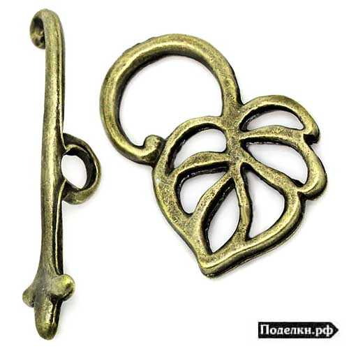 Тогл Листик 0002656 бронзовый цвет 16x11 мм (застежка 22x6 мм)