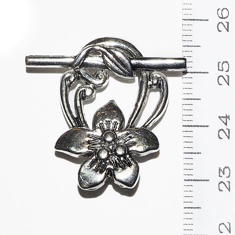 Тогл Цветок 0002664 серебряный цвет 30x20 мм (застежка 30x6 мм)