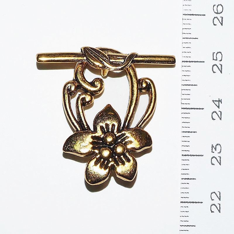 Тогл Цветок 0002666 золотой цвет 30x20 мм (застежка 30x6 мм)