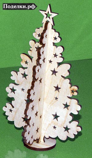 Фигурка деревянная 0002843 Елка объемная на подставке со звездами большая 26x15.5 см