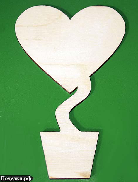 Фигурка деревянная 0002864 Сердечко в горшочке 14x8 см