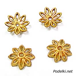 крепежная шапочка литая цветок 0003138 золотой цвет 11x3 мм