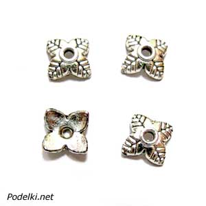 Крепежная шапочка литая Цветок четырехлистный 0003141 серебряный цвет 9x3 мм