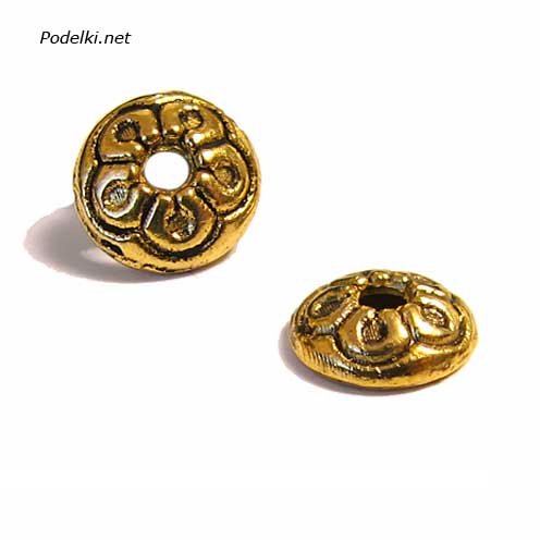 Крепежная шапочка литая Цветочек 0003181 золотой цвет 7x2 мм