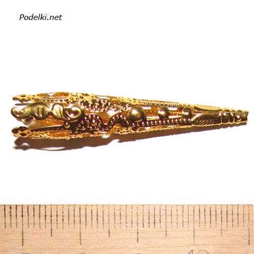 В нашем интернет-магазине можно купить декоративные элементы для бижутерии, в продаже крепежная шапочка штампованная конусообразная длинная 0003186 золотой цвет 40х7 мм и другая фурнитура. Доставка товаров осуществляется в Санкт-Петербурге и по России. Вернуться Назад