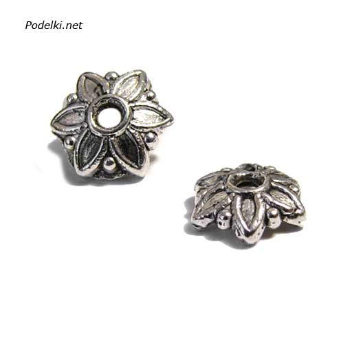 Крепежная шапочка литая Цветок шестилистный 0003193 серебряный цвет 8x2 мм