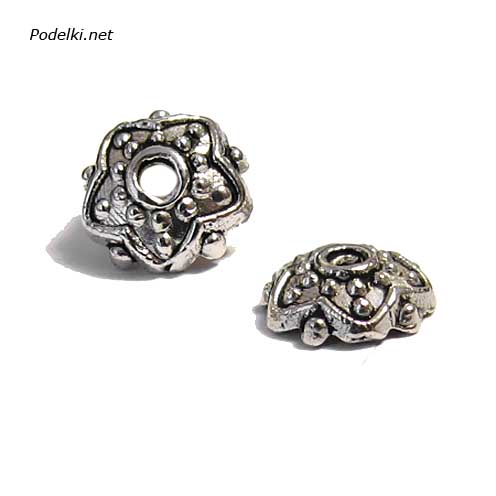 Крепежная шапочка литая Цветок Звездочка 0003197 серебряный цвет 8x3 мм