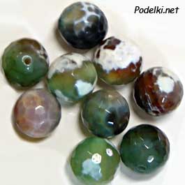 Натуральная бусина Агат пестро-зеленый 0003357 шарик граненый 10 мм