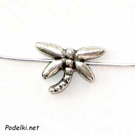 Металлическая бусина Стрекоза 0003508 серебряный цвет 16x11 мм