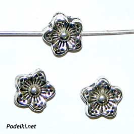 Металлическая бусина Цветок 0003529 серебряный цвет 9x4 мм