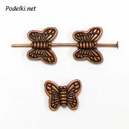 Металлическая бусина Бабочка 0003554 медный цвет 11x9 мм