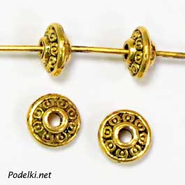 Металлическая бусина Диск 0003566 золотой цвет 7x4 мм