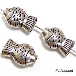 Металлическая бусина Рыба круглая 0003584 серебряный цвет 14x10 мм