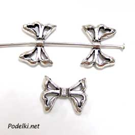 Металлическая бусина Бантик 0003591 серебряный цвет 13x10 мм