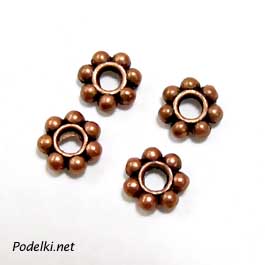 Металлическая бусина Колесико 0003597 медный цвет 7x2 мм