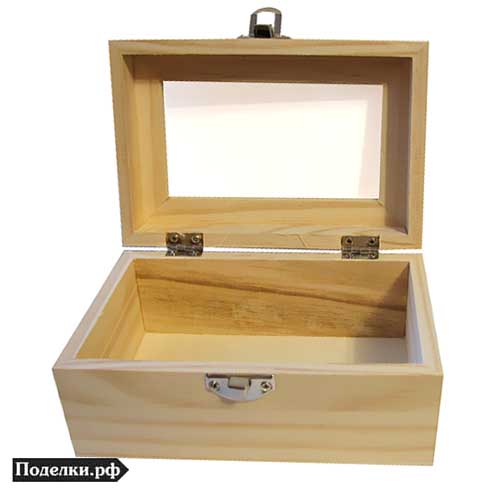 шкатулка 0003601 деревянная со стеклянной вставкой 15х10x7.5 см