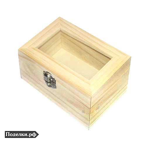 Шкатулка 0003601 деревянная со стеклянной вставкой 15х10x7.5 см