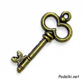подвеска ключик 0003844 бронзовый цвет 30x13 мм