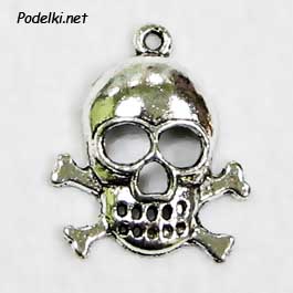 подвеска череп плоский 0003845 серебряный цвет 27x23 мм