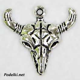 Подвеска Коровий череп 0003852 серебряный цвет 29x28x4 мм